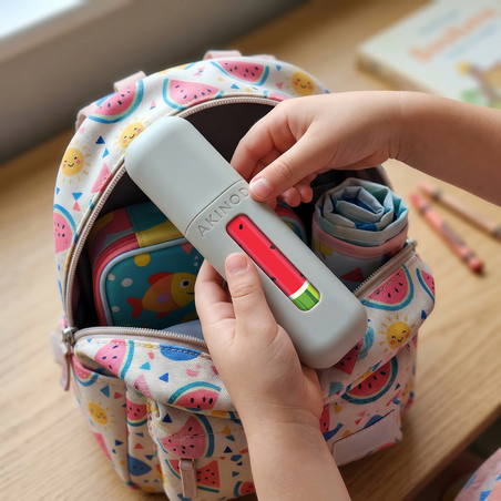 Die Akinod "Mini" 12:12 Besteckserie ermöglicht es Ihnen, Ihr Lieblingsbesteck überallhin mitzunehmen, mit minimalem Platzbedarf. Diese verkleinerte und kompakte Version unseres berühmten tragbaren Bestecks enthält einen Löffel und eine Gabel, die sich clever magnetisch verbinden lassen, um den Transport zu erleichtern. Erhältlich in einer breiten Kollektion farbenfroher Muster, passt sich dieses Besteck jedem Geschmack an und verleiht Ihren Mahlzeiten unterwegs eine persönliche Note.