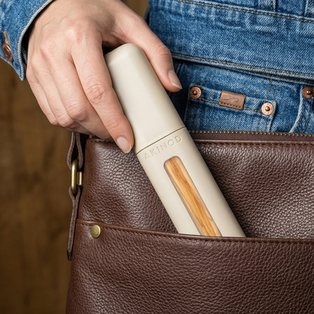 Olivenholz, mit seinen beigen Wirbeln, ist seit langem für seine Ästhetik und Robustheit geschätzt. Akinod hat es daher als bevorzugtes Material für die Griffe seines Bestecks ausgewählt.