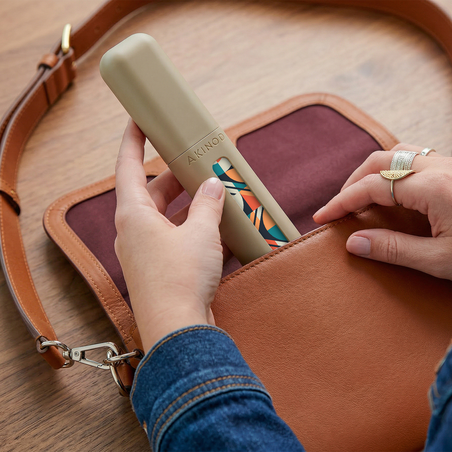 Besteck aus martensitischem Edelstahl 2CR14, hochglanz schwarz. Bestehend aus einem großen Löffel, einer 4-zahnigen Gabel und einem Messer mit einer mikroverzahnten Klinge. Dekorierter, transparenter Polymer (PC)-Griff. Fixierung mittels verbautem Magnet. Geliefert mit einem Trageetui aus Hartpolypropylen (PP). Spülmaschinenfest.