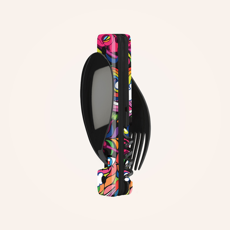 Die perfekte Verbindung von kompakter Besteckfunktionalität und Street-Art-Dekor für unvergessliche Mahlzeiten, sei es in der Stadt oder anderswo!