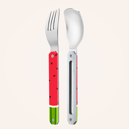 The Akinod "Mini" 12:12 cutlery range allows you to take your favorite cutlery with you everywhere, with minimal bulk. A reduced and compact version of our famous portable cutlery, this set includes a spoon and a fork that cleverly magnetize together for easy transport. Available in a wide collection of colorful patterns, this cutlery adapts to all tastes and adds a personal touch to your meals on the go.