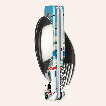 Named for the time of day they are most likely to be used, the multifunctional 13:25 cutlery meets all your needs in a snap. With powerful magnets hidden in the handle, they detach and attach easily, offering the comfort of the finest tables for your picnics.