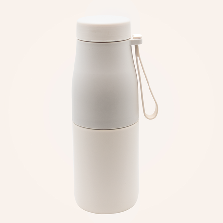 En acier inoxydable double paroi, cette bouteille isotherme avec son gobelet intégré se glisse parfaitement dans tous les sacs Akinod pour vous permettre de transporter et consommer vos boissons fraiches ou chaudes n'importe où mais pas n'importe comment. Agréable au touché, le revètement extérieur en polypropylène et silicone confère à cette bouteille un caractère unique et agréable surprenant. Astucieux, le gobelet intégré permet notamment de consommer une boisson chaude sans risque de se brûler. La grande ouverture permet un entretien facile pour une hygiène irréprochable. Enfin, grace à un filtre intégré dans son bouchon, votre bouteille isotherme Akinod 7:20 vous permet d'infuser votre boisson préférée (thé, décoction de fruits, ...) directement, à même la bouteille.