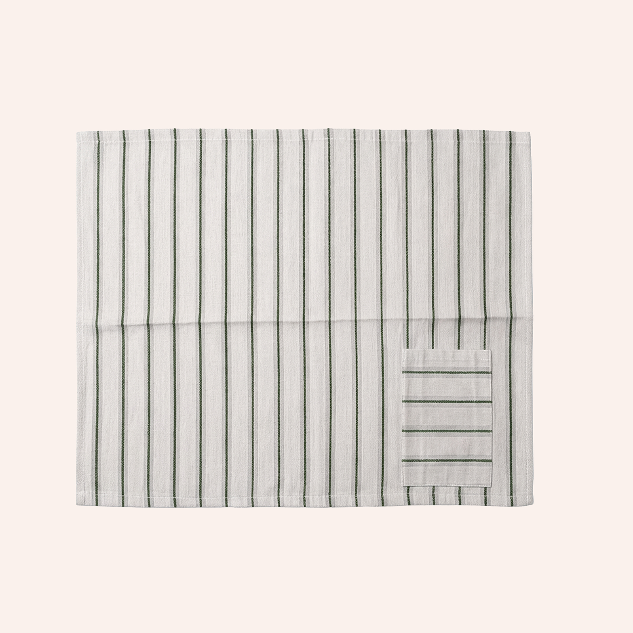 Serviette 100% coton et ruban élastique en polyesther. Poche cousue.